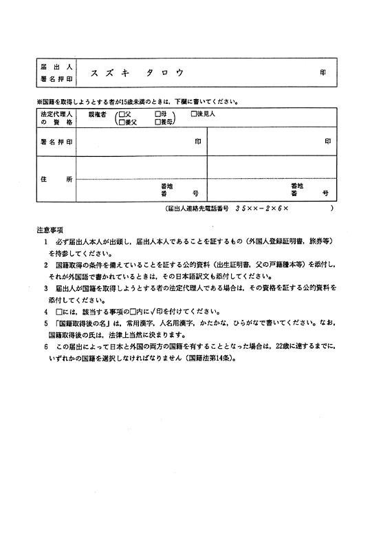 国籍再取得の届出