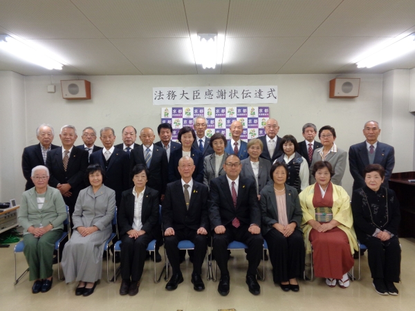 令和7年10月31日(金)、京都保護観察所の会議室において、永年保護司として御活躍いただき、満齢退任を迎えられた保護司の方々に対しまして、法務大臣感謝状の伝達式を執り行いました。長年の御労苦、御協力に対して厚く御礼を申し上げます。