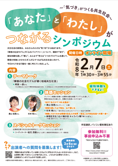 「『あなた』と『わたし』がつながるシンポジウム~『気づき』がつくる共生社会~」の開催について