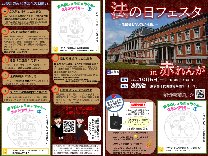 そして、「法の日」から1週間を「法の日週間」とし、この「法の日週間」に、法の役割や重要性を考えていただくとともに、法を身近に感じていただくためのイベントとして毎年法務省で開催しているのが、「法の日フェスタ in 赤れんが」です。