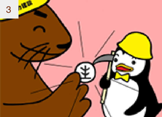 昔(むかし)のボクたちは、悪(わる)いことばかりする「非行(ひこう)ペンギン」でした。ホゴちゃんとサラちゃんの4コママンガを見(み)ましょう〜!