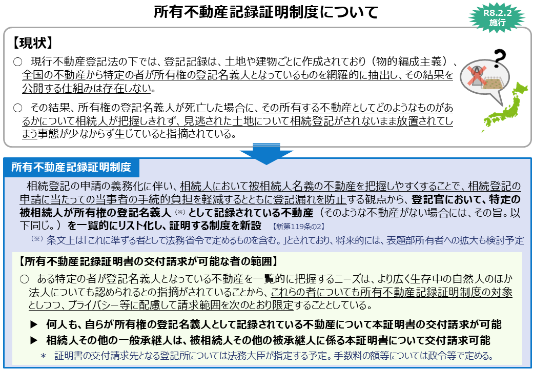 ・ 所有不動産記録証明制度(令和8年2月2日施行)