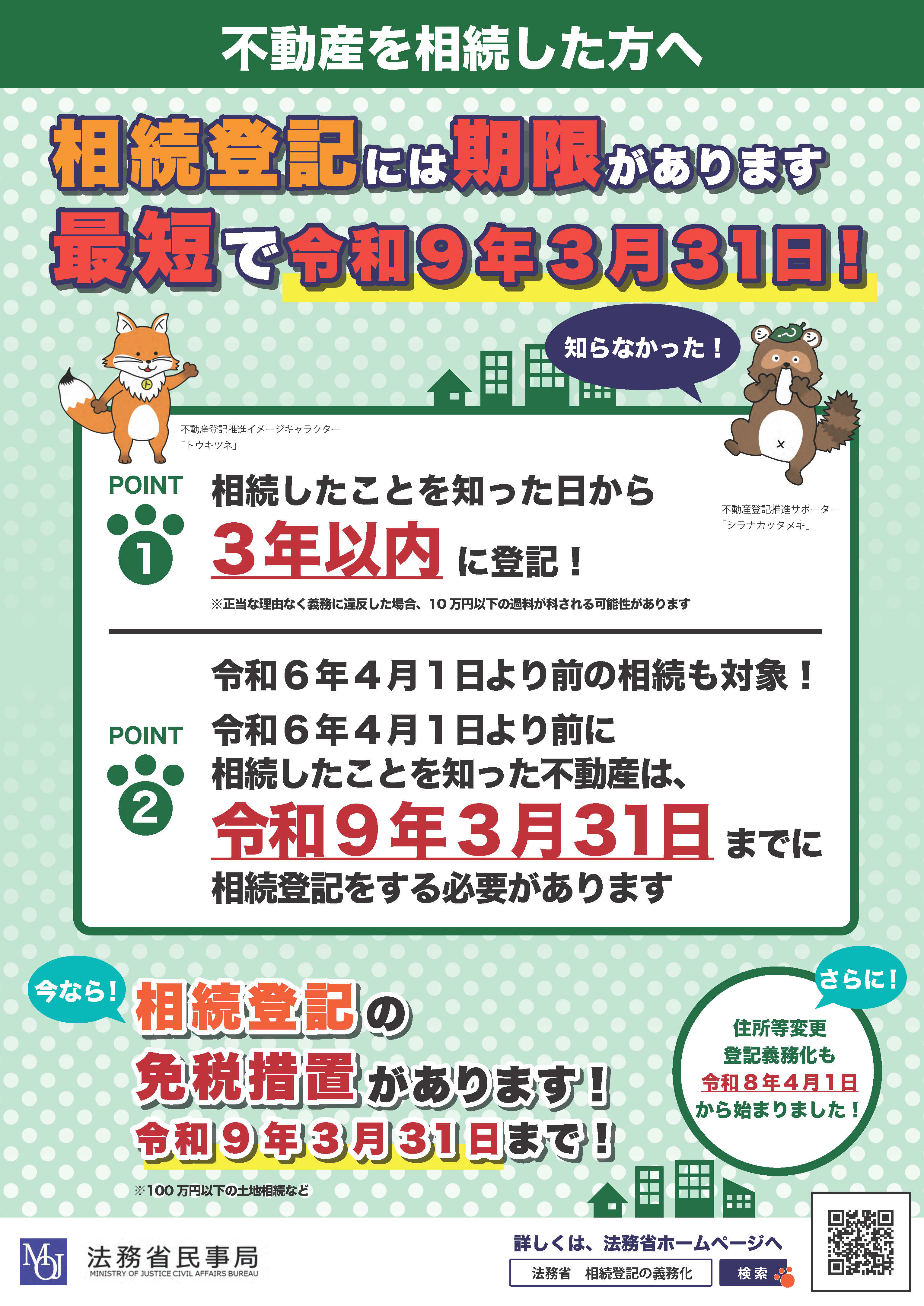 | 相続登記には期限があります 最短で令和9年3月31日! [PDF:4,575KB] 【令和8年3月17日更新】
