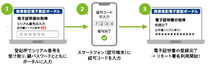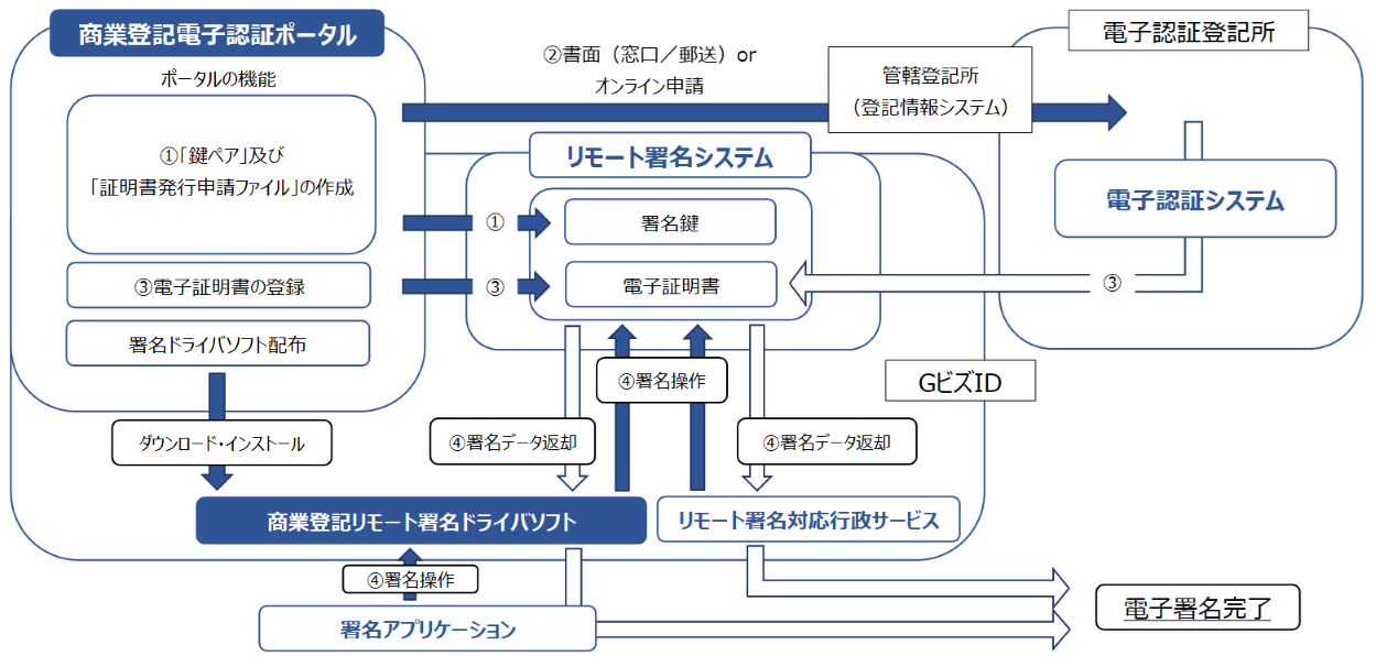 この方法は、「リモート署名方式」と「商業登記電子認証ポータル」という新しい仕組みを導入することで実現します。