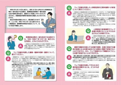 ○ 人事訴訟・家事調停において、当事者双方が裁判所に現実に出頭しなくとも、ウェブ会議を利用して、離婚・離縁の和解・調停を成立させたり、合意に相当する審判の前提となる合意をすることができるようになります。