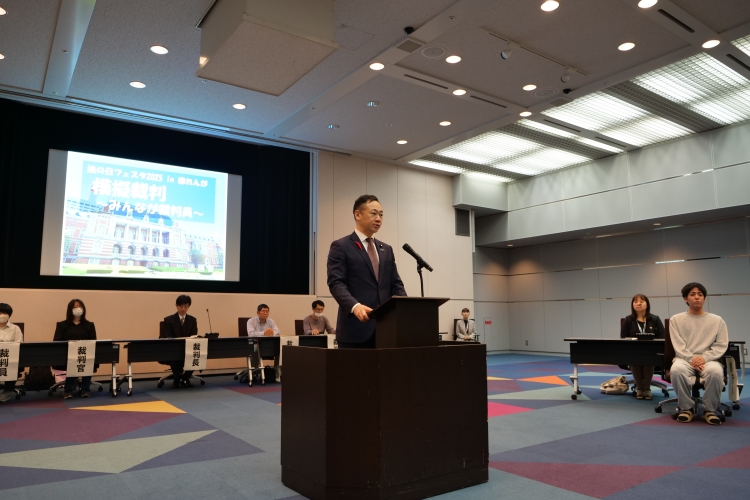 また、毎年の人気プログラムである「模擬裁判-みんなが裁判員-」では、冒頭挨拶を行いました。