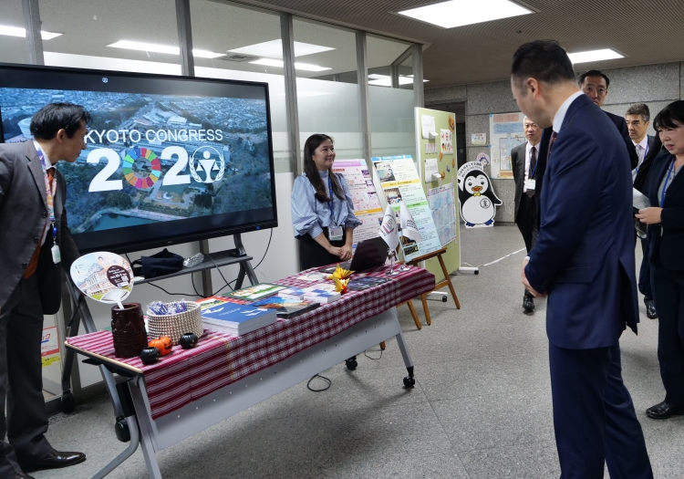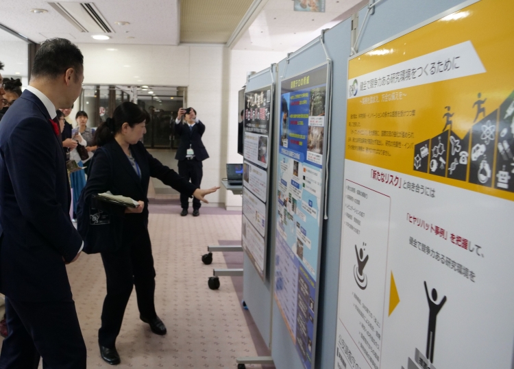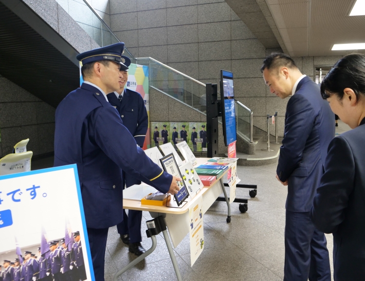 さらに、各局部課の施策等を展示している各ブースを視察され、展示物や各局部課の取組等について説明を受けました。