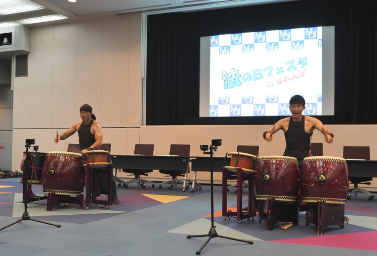 今年度は、法の日フェスタの開催に際し、オープニングセレモニーを実施しました。和太鼓心動隊 動志のお二人をお招きし、迫力ある和太鼓の演奏を披露していただき、活気のあるイベントの幕開けとなりました。その他、開会宣言やテープカット等、セレモニーの様子はこちらのフォトニュースを御覧ください。