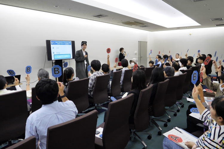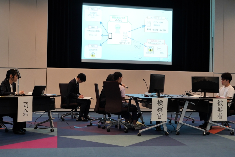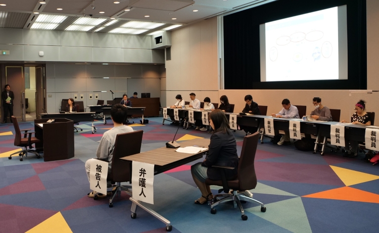 参加者の皆様に、強盗致傷を題材にした本番さながらの模擬裁判を傍聴いただき、裁判員になったつもりで、被告人は犯人と言えるのか、犯人と言える場合の量刑等について考えていただきました。