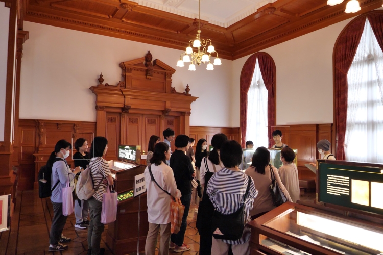 司法の近代化に関する展示解説に聞き入る参加者の皆様