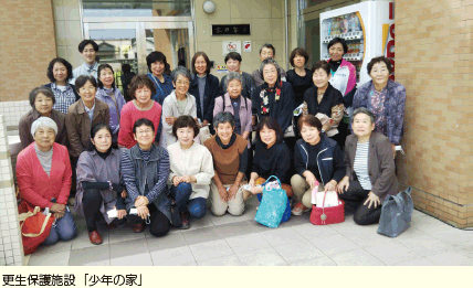 年2回25名程で市の公用マイクロバスや民間バスを借りて2時間かけて更生保護施設「少年の家」を訪問し、食事作りや屋内外の掃除等を行っています。明るい雰囲気の館内では在所者と挨拶したり、備品の場所を教えてもらったり、草取りなど一緒に作業をし、時間が経つにつれ少しずつ会話も増え、笑顔をお土産に温かい気持ちで帰路につきます。十数年続けている「すみれ広場」での子育て支援や近隣の施設との交流は地域に根ざした活動として続けていきます。ここ数年、保護司会との協力活動も増え、うれしく思っています。