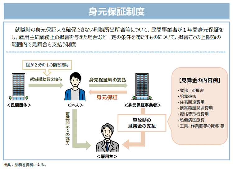 法務省は、厚生労働省と連携し、刑務所出所者等の就労支援に係る各種制度を紹介するパンフレットを作成し、協力雇用主等に配布して更なる理解促進に努めている。