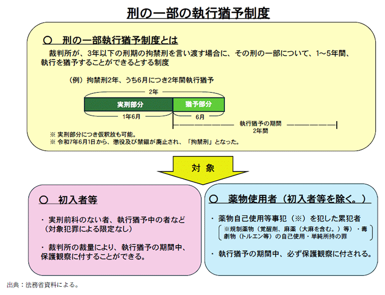 法務省及び検察庁は、薬物事犯者の再犯を防止するため、刑事施設内における処遇に引き続き、社会内における処遇を実施する刑の一部の執行猶予制度(資2-42-1参照)の適切な運用を図っている。