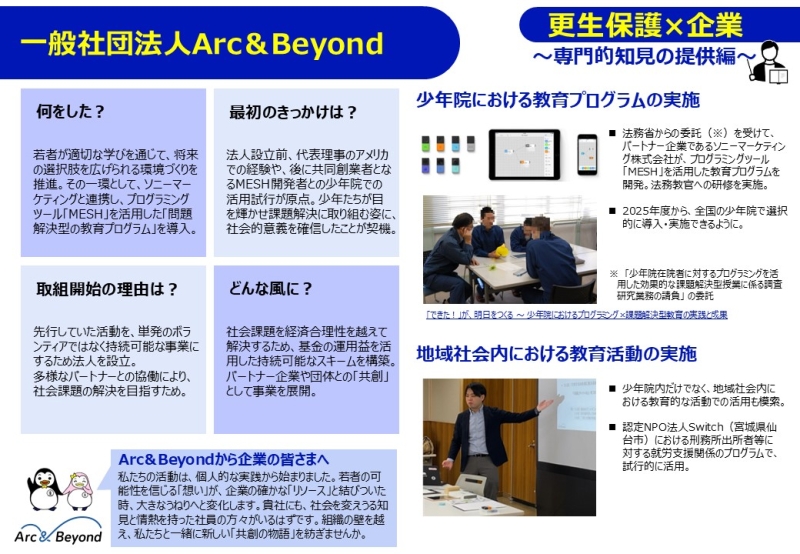 企業の皆様が培ってこられた「就労」「医療」「教育」などに関する専門的な知見やノウハウが再犯防止に活用できる可能性があります。