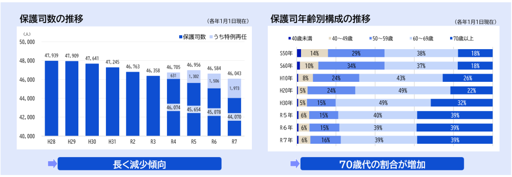 しかし、上記のように保護司の減少傾向・高齢化が進んでおり、持続可能な保護司制度の確立が課題です。