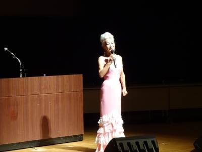 今回は、鹿児島県内を中心に活動されている歌手のかずみさんをお招きして、国歌独唱や祝歌を披露いただきました。受彰者を含め来場者からは、「歌声が素晴らしかった」「素敵な歌で祝ってもらい感動した」等の声が上がり、大盛況でした。