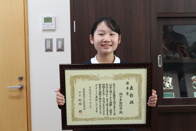 全国審査会の結果、鹿児島市立武小学校5年・須ケ牟田怜奈さんの作品が小学生の部で優秀賞(全国連合小学校長会会長賞)に選ばれ、同年12月23日に同校にて表彰状伝達式を行いました。