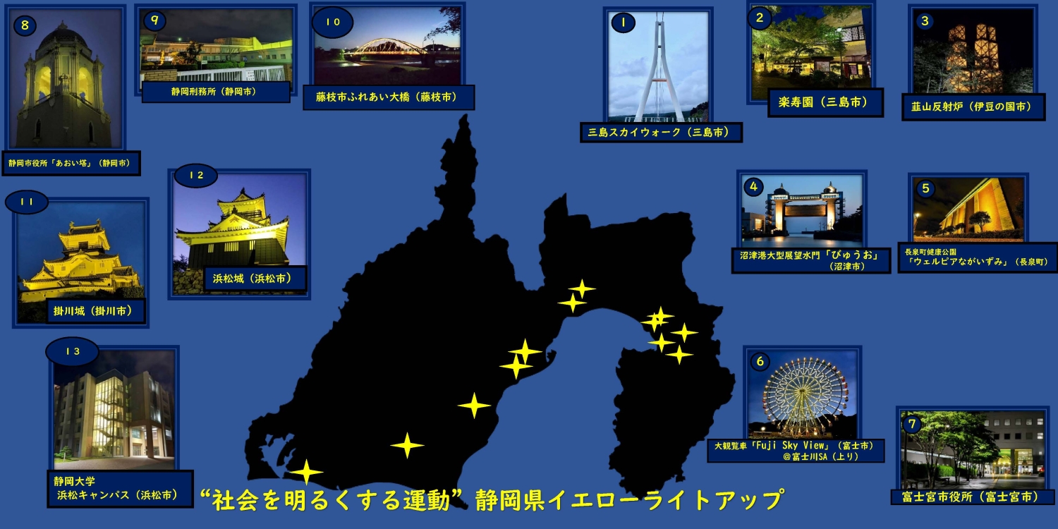 “社会を明るくする運動”強調月間の7月に、静岡県内の施設を更生保護のシンボルカラーである黄色でライトアップします。