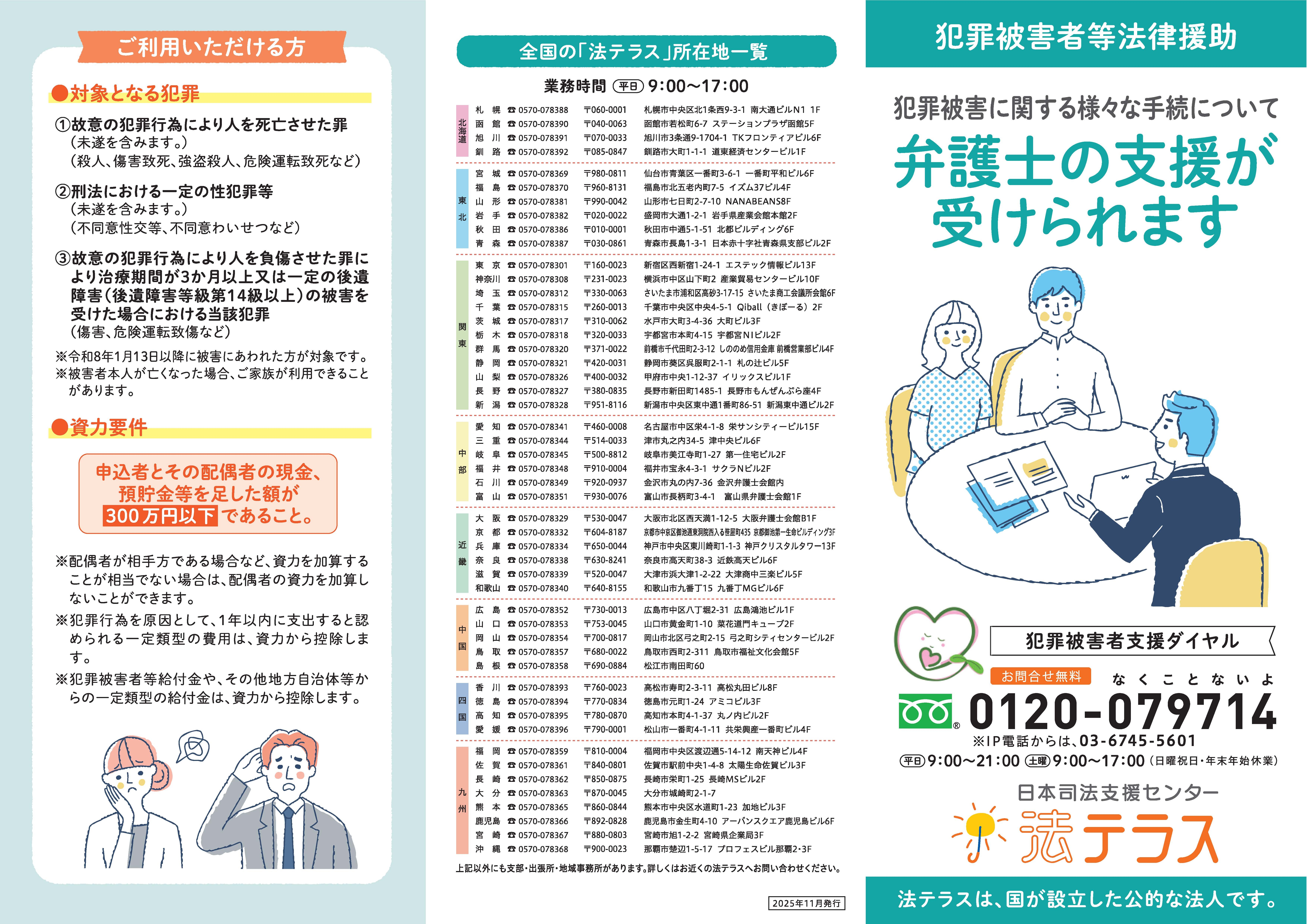 ・ 日本司法支援センター(法テラス)リーフレット「犯罪被害者等法律援助」