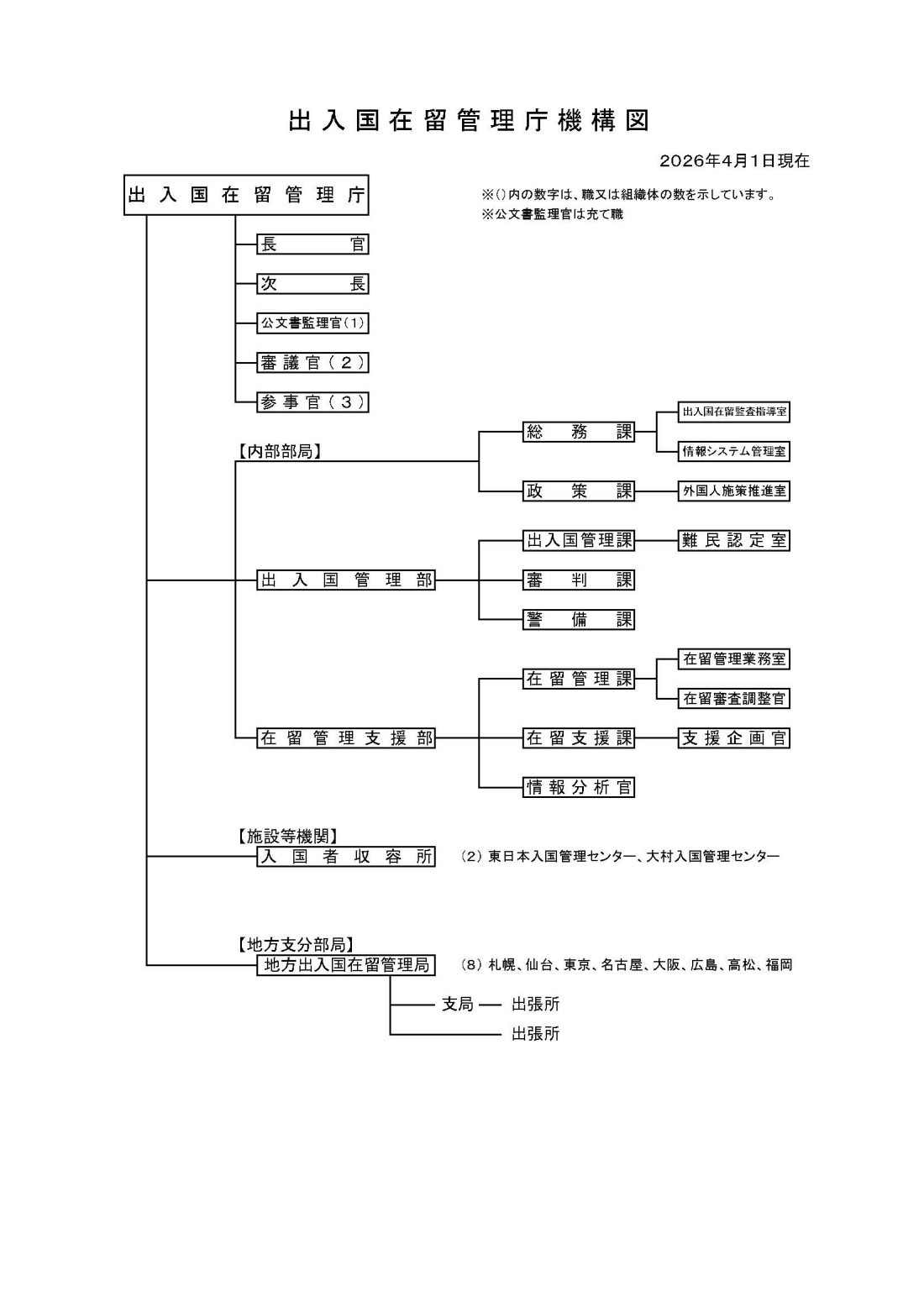 出入国在留管理庁機構図(令和8年4月1日現在)(PDF:53KB)