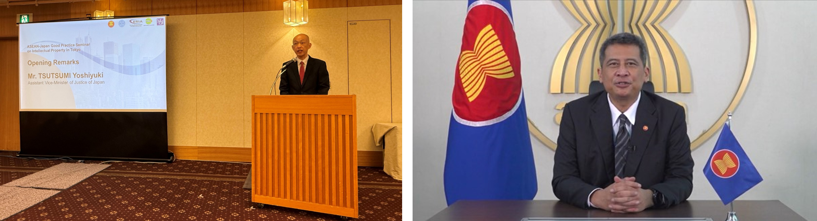 開会に当たり、隄良行法務省大臣官房審議官は、法務省が30年以上にわたりASEAN地域で法制度整備支援を行い、JSIPを通じて知財分野の国際的議論を積み重ねてきた実績について言及しました。また、経済成長に伴い深刻化するEコマース上の模倣品や商標権侵害への対応が重要であると訴え、本セミナーが実務家ネットワークを強化し、日ASEANの協力関係の更なる深化につながることへの期待を示しました。
