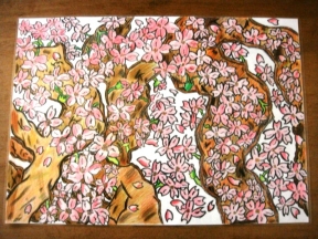 「僕は、昔から絵を描くのが苦手で、最初は上手に描けるのかなぁと思っていましたが、講師の先生が、絵の描き方を教えてくれました。描き終わった絵をみたら、本当に立派な桜が描けました。皆で一生懸命描いた桜の絵は、生きているように見えました。」