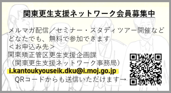 「関東矯正管区」と「関東地方更生保護委員会」が立ち上げた、罪を犯してしまった人達を支える人・組織をつなぐネットワークです。