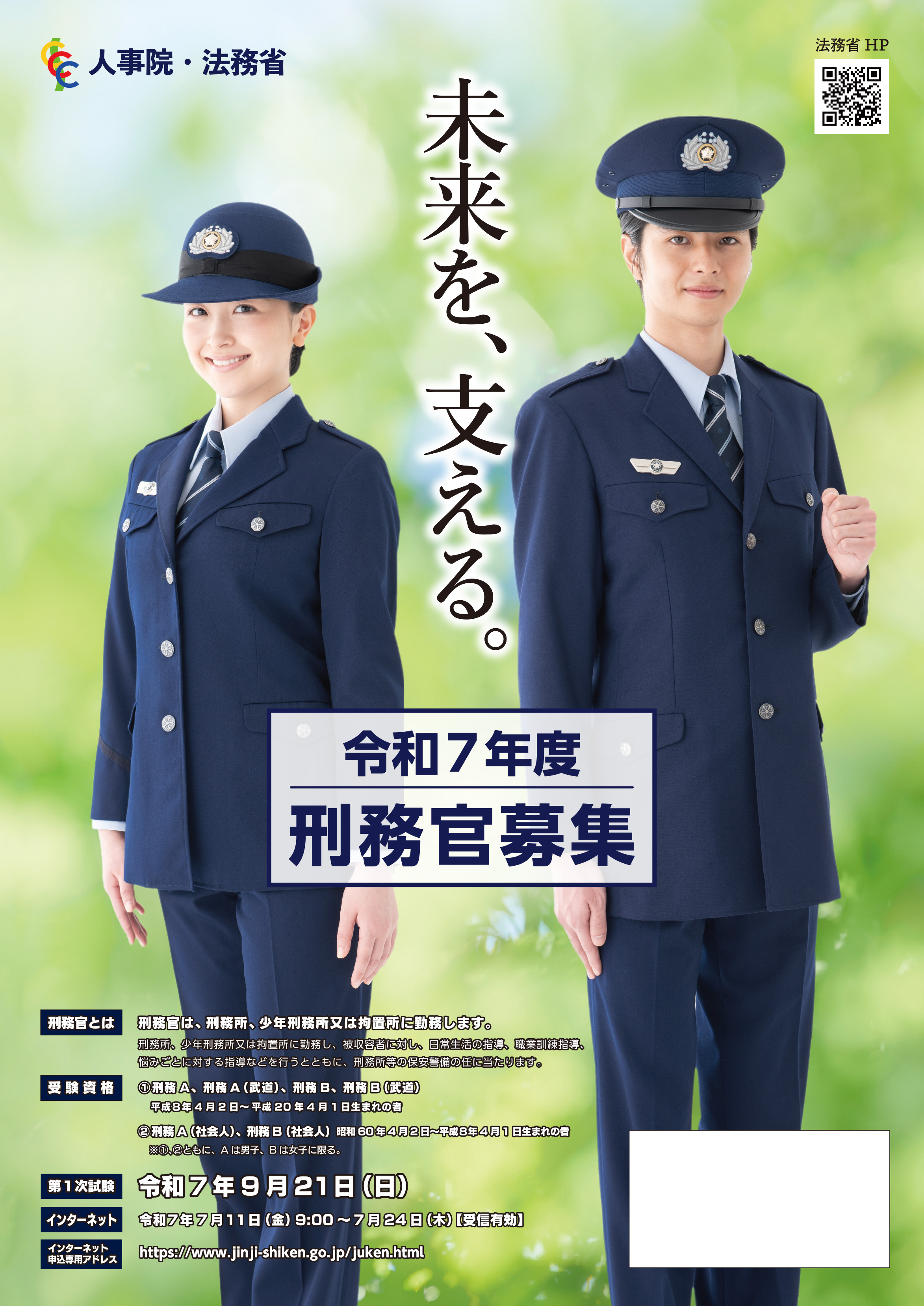 | 第1次試験 | 9月21日(日)9:00受付開始 9:30(試験開始) 12:50(作文試験終了) ※ 刑務A(武道)・刑務B(武道)の受験者は第1次試験の作文試験終了後、実技試験(柔道又は剣道)を行います。 |