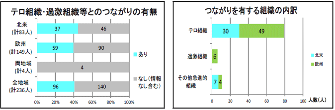 テロ組織・過激組織等とのつながりを有していたとの情報がある者は,236人中,少なくとも96人(40.7%)に上った。
